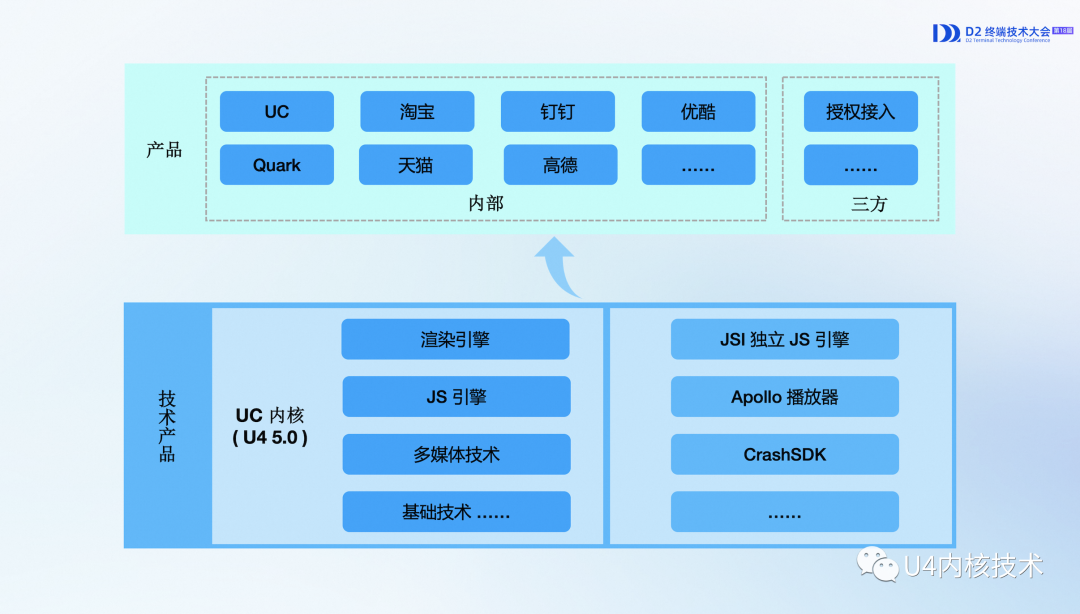 U4 5.0 是 UC 内核团队研发的最新一代 Web 引擎。U4 内核的应用非常广泛,阿里巴巴集团大部分 App 底层的渲染引擎都是 U4 内核,比如 UC、Quark、淘宝、钉钉等等。我们还以授权接入的方式提供给第三方使用,体量也非常大。除了 U4 内核,我们其它的技术产品 JSI 独立 JS 引擎、Apollo 播放器、CrashSDK 也被大量产品接入使用。本文给大家介绍的主要是 U4 5.0 内核,下面会从渲染引擎、JS 引擎、多媒体技术、基础技术等方面,给大家详细介绍内核引擎技术的演进思路和应用实践。