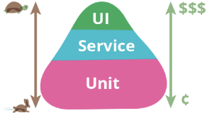 对行业的各种测试进行分层,越往上,发现bug的时间越晚,成本(时间,人力,损失)越高。接口测试(Service)相比ui测试,可以更早发现问题,更快的质量反馈;同理,单元测试(Unit)相比接口测试,可以更早发现问题,更快的质量反馈,花费的成本更低。
