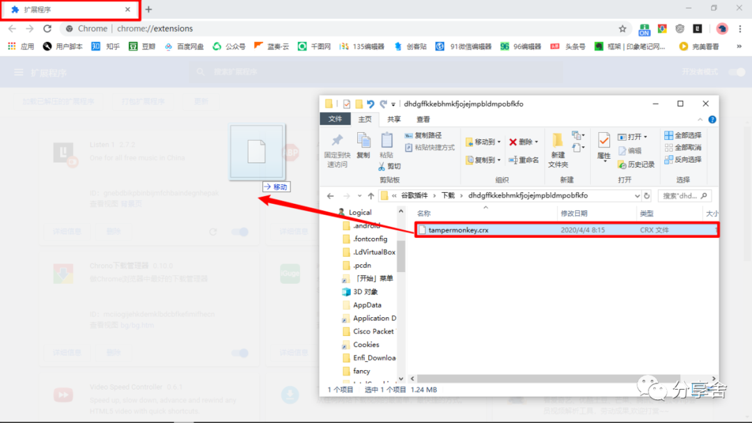 选择后缀为CRX文件,拖到扩展程序页面,就开始安装插件