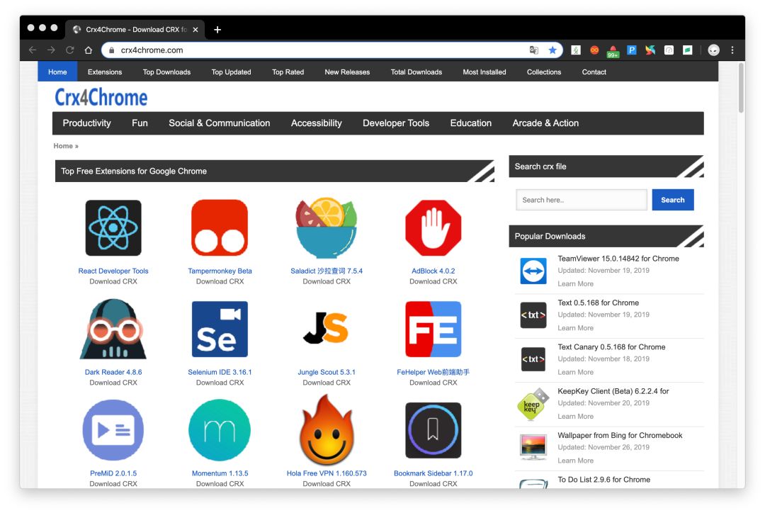 首先我们要解决怎么安装 Chrome 扩展程序(以下简称为「插件」),有梯子可正常访问chrome.google.com/webstore的读者可以忽略,没梯子的读者可以访问crx4chrome.com,Crx4Chrome 上可以找到绝大部分的 Chrome 插件。