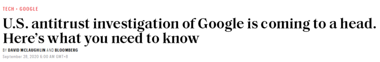 2019 年 9 月初,Google 证实已接到美国司法部要求提供反垄断调查相关记录的通知,政府对 Google 的反垄断调查也算是正式拉开帷幕,至今基本已有 14 个月之久。