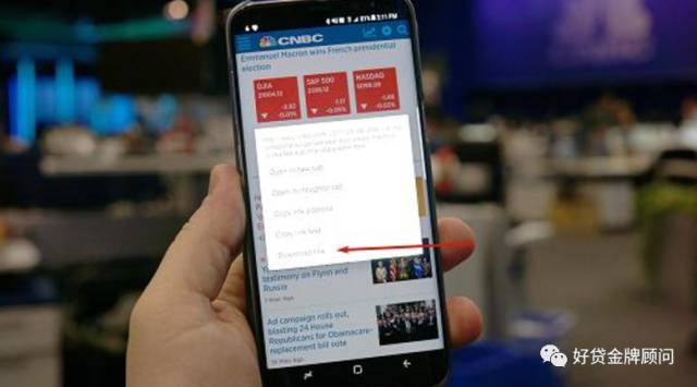 第二步:在附有众多链接的网页上选择自己想要保存的链接,然后长按链接,并在之后弹出的选择菜单中选择下载该链接(Download link)