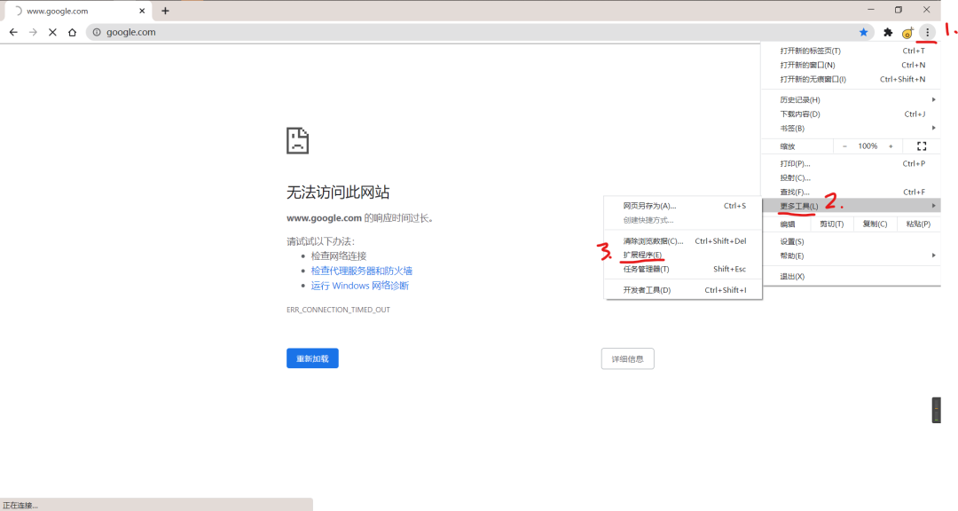 2、打开Chrome浏览器,按照图示进行操作