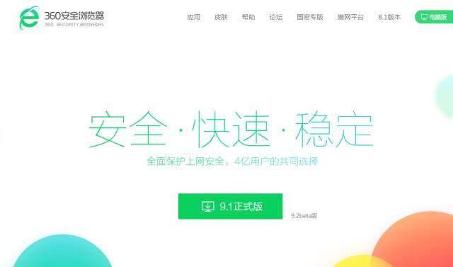 360浏览器为4亿用户守护上网安全,已经历了九年的岁月。9年来,360浏览器心系用户需求,深耕技术提升,在产品、功能、技术支持等方面不断升级,在PC浏览器发展趋近于成熟的当下,依然不断然所新架构、新理念,以行业第一的身份不断开拓新方向,成为用户最值得信赖的王牌产品。我们不断做出更新更快更好的改变,只愿能为用户提供更好的体验。在这九年里,衷心感谢大家的一路陪伴,未来的日子里,360浏览器也将永不止步,历久弥新。