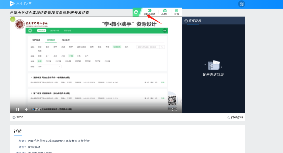 只要我们打开视频,把鼠标移到视频上,就会在右上角出现一个 录制小视频。