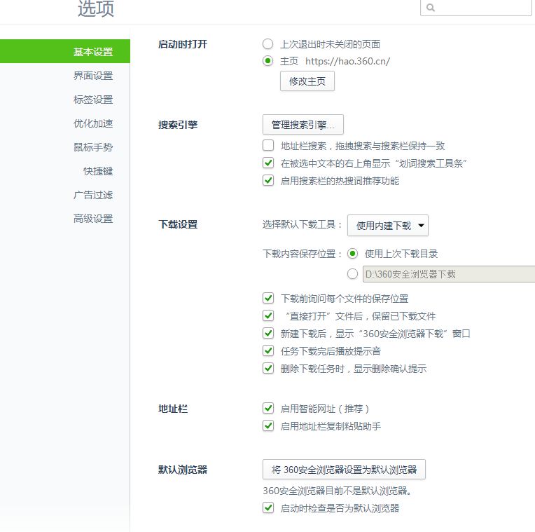例如:对360浏览器设置: