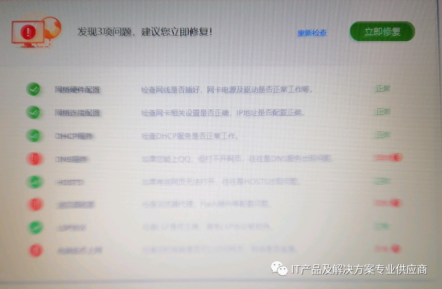 检查后,显示如上界面,选择立即修复,都变为绿色的,本以为就好了呢,结果还是不行,除了这样操作以外,我们还可以尝试哪些动作呢?