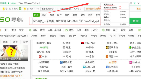 技巧一:我们在上网过程中需要给人发送个网站地址,在以前我们都是在浏览器地址栏全选网址后粘贴复制网址发给朋友。有了360浏览器就简单啦,首先360浏览器默认是鼠标左键点击地址栏会提示复制直接点击复制网址,然后点击鼠标右键会弹出下拉菜单选择复制网站和标题。如图所示:
