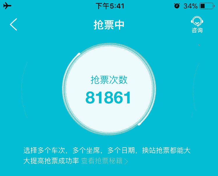 后来创哥上网查了才发现,原来抢票次数是脚本早就设置好的。即使手机开飞行,抢票次数也还能继续飞速增长。抢票次数可以瞎写,谁来管我们回家呢?