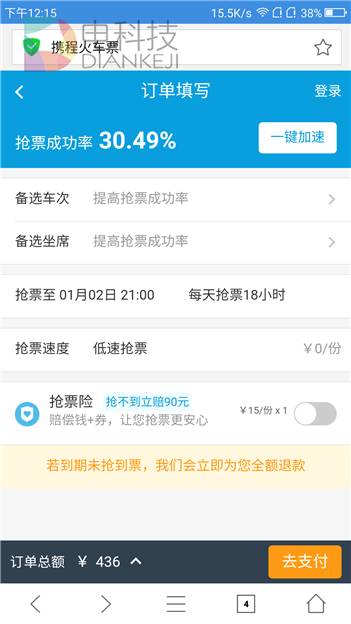 QQ手机浏览器的牛抢票依旧是途牛提供的功能,大体上和以往常见的抢票形式没有区别,即输入购票信息由浏览器帮你刷票,可用户仍旧需要额外支付5元的铁路客票代售费。
