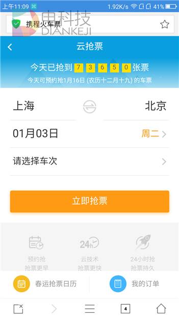 谈到用浏览器抢票,最先需要认识到的是,浏览器只是帮助你在所购车票无票时,增加有退票或再次放票的情况下,成功购买到车票的几率,它不能为你在已满员的车厢你找到额外的座位,也不是真的从其他买到车票的用户手上把车票抢过来,浏览器抢票的关键,在于能否时刻了解车票销售状况并迅速提醒你点击购买。