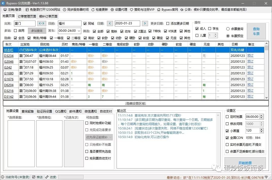 神器核心功能之二:全自动刷票 自动监控余票