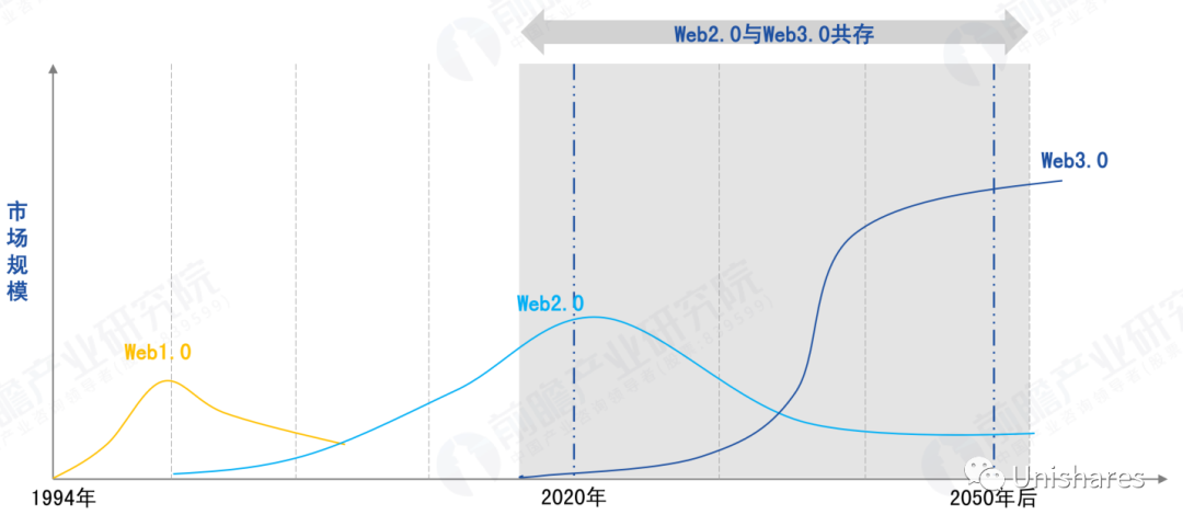 目前我国Web3.0发展路径不明朗,发展理念亟待理清,相关政策监管有待完善。预计Web2.0与Web3.0阶段将呈现很长一段时间的并存。