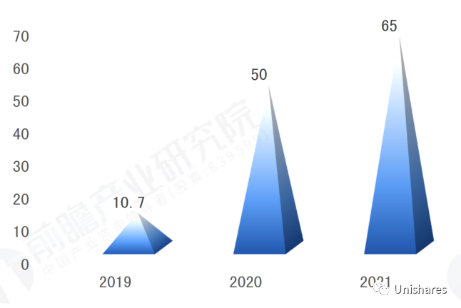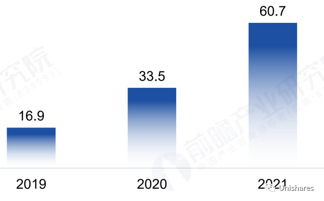 图表13:2019-2021年中国区块链市场规模(单位:亿元)