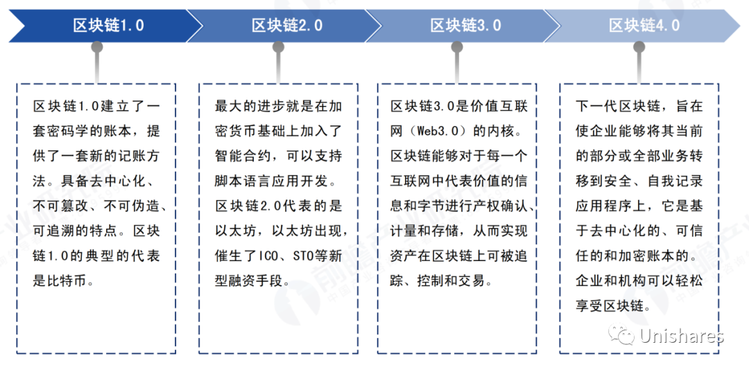 区块链从1.0发展,经历了三代,目前正处于3.0时代。区块链1.0时代以比特币的出现为标志, 2.0时代以智能合约和以太坊的诞生为节点。区块链3.0是Web3.0的内核,可实现资产在区块链上的可追踪、可控制、可交易。目前多应用于金融等领域。