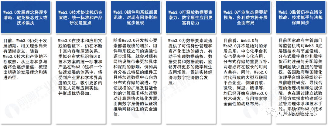 Web3.0尚处于发展初期,未来Web3.0仍需要相关技术、产业、用户认知、法律法规的推动及适配。