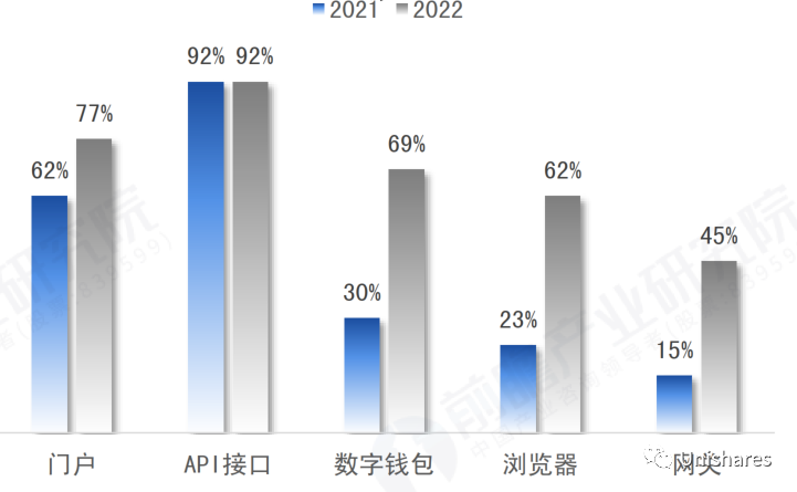 图表14:2021-2022年中国区块链主要接入方式统计(单位:%)