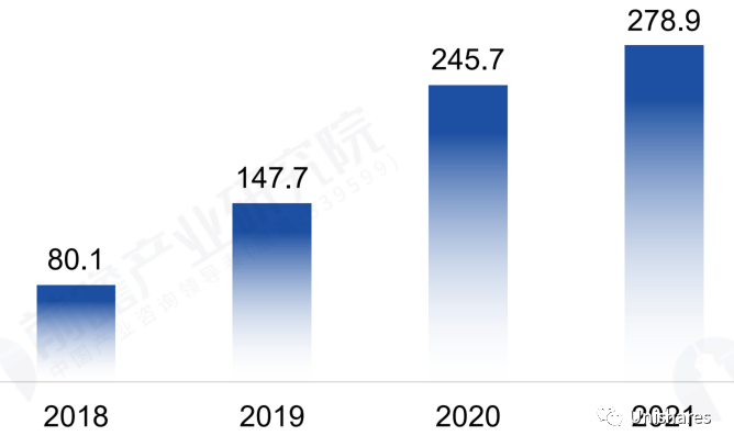 图表23:2018-2021年中国虚拟现实(VR)市场规模(单位:亿元)
