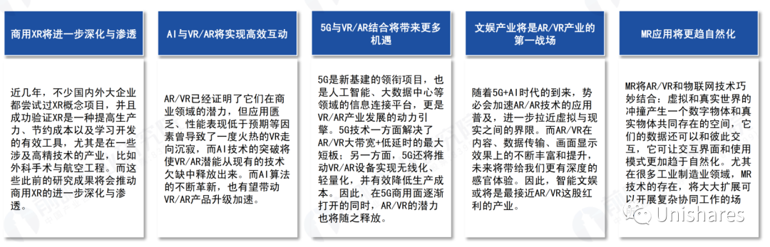 XR技术随着5G、 AI等关联产业的发展在技术和应用场景上有较大突破。未来,随着Web3.0时代的来临, XR技术的商用化将进一步加深,与基础层和软件层的结合将更加紧密,带来更多的机遇。