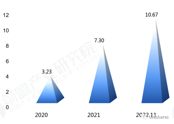 依据中国电信、中国移动和中国联通三大运营商年报数据,我国5G用户累计数量从2020年3.23亿户上升至2022年11月的10.67亿户,突破10亿大关。未来,随着5G行业的发展,在AR方面的应用潜力将突破1500亿美元。