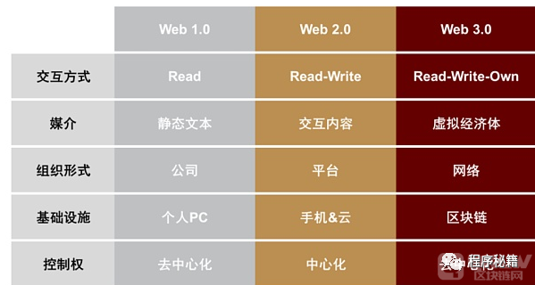 图表:Web1.0、Web2.0、Web3.0的性质对比