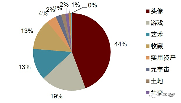 图表:NFT交易额分类别占比(2022年2月)