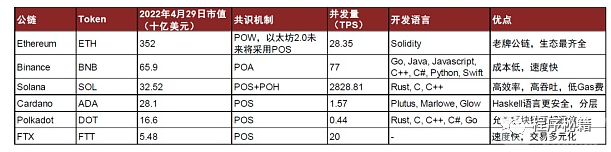 图表:知名公链各项情况对比