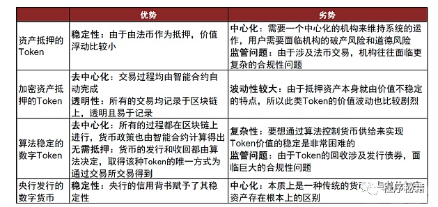 图表:不同稳定币的特点