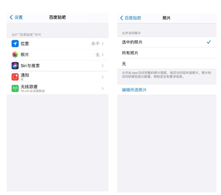 上述方法在用户不输入账户名和密码的情况下起到个人数据隐私保护作用,一旦用户登录个人账户,就等于将身份数据告知应用平台,OAID技术的功能也就此失效。由于早期手机厂商对数据管理不够重视,用户在下载互联网应用后会被默认开启对所有数据的访问权限,这导致互联网平台肆无忌惮的采集了大量与业务无关的用户数据。在这种情况下,手机厂商为了保证设备的隐私安全性,增加了互联网平台数据使用的强提醒功能并让用户对数据的使用进行授权。以相册数据的使用为例,如图3所示,苹果手机的相册数据授权分为三种模式,分别为所有照片、选中的照片和无,该授权让用户对照片数据拥有了更加细颗粒度的管理能力,尤其是 选中的照片功能,让互联网平台只能采集到用户希望展示的照片,从本地段对数据采集的范围进行了限制。