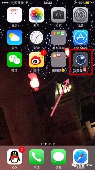 首先要告诉大家苹果手机下载App都是在App Store(苹果商店)中下载的,所以我们首先要找到桌面上的蓝色大写A图标的App Store,点击进入,如图箭头所指的就是App Store。