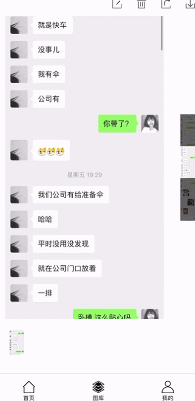 3、接下来打开需要滚动截屏的网页或APP,一般网页长截屏用上面的手机QQ就很方便,这个APP主要适合滚动长截屏APP,如QQ/微信聊天、朋友圈、歌单等等,有时候十分实用,以下是效果图。