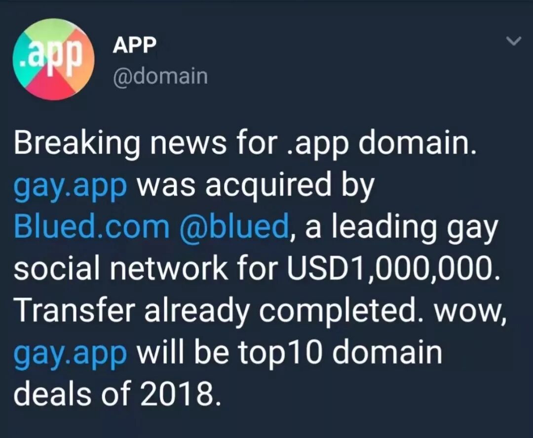 Blued:Gay.app(100万美金收购,创全球新域名交易纪录!)