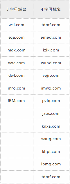 Whois显示,IBM旗下多为3字母域名和4字母域名。字母域名简短易记,可与企业品牌直接对应,一向是众多企业的首选。