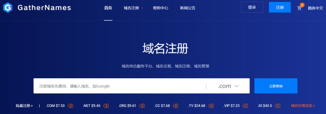GatherNames是一个全新型国际化域名服务平台,产品及服务覆盖全球、客户涵盖个人站长、域名投资者、代理用户、企业客户。