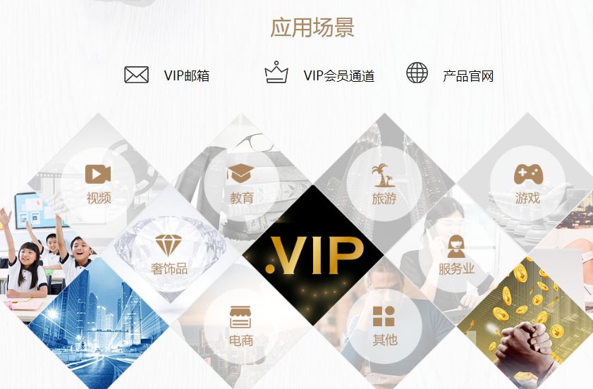 例如网建科技旗下logo设计网站启用的官网域名是:logo.vip;全球知名域名注册局明智墨思拿下.vip后缀域名的注册权后,官网域名也开始启用ym.vip;租房类平台众房汇官网启用的域名是zfh.vip。