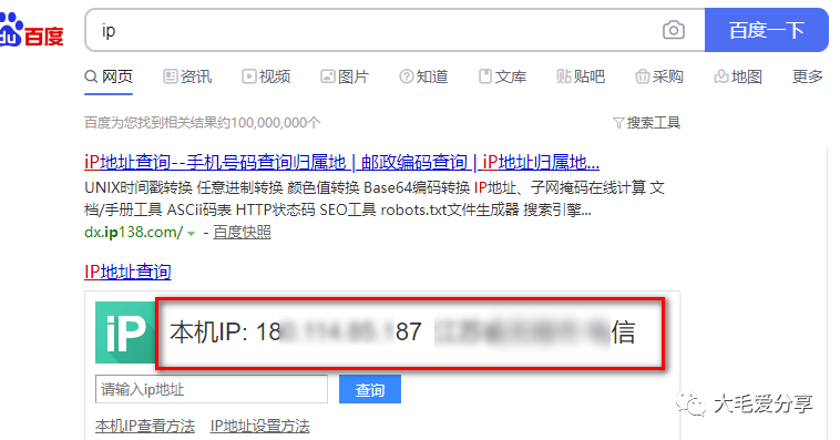 然后百度 ip 如下图: