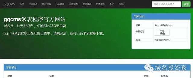 域名多到一定数量的时候,打理起来可能会力不从心,这时候建议做个米表网站,专门用于展示自己的域名,增加曝光和出售的机会。米表程序推荐使用gqcms,该米表是基于OneThink开发,轻快、响应化设计,且具有强大的后台配置能力。当然,如果稍微有点网站开发经验的,完全可以自己做一个。