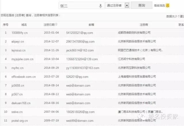 在有些时候,Whois反查也是需要的,即通过姓名、EMail等反查其持有的域名,建议去笨米网。但目前的反查,只支持一些主流域名。