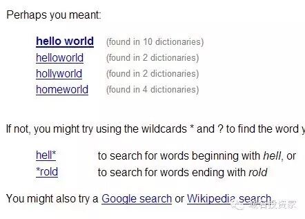 有时候我们要选一个域名的时候,恰好这个域名被注册了,这个时候我们可能会左思右想要找到一个意义相近的词,或把原词的字母颠倒等,但其实这个工作也可以借助软件来完成,推荐NameBoy和OneLook。下面是在OneLook输入helloworld的反馈结果。