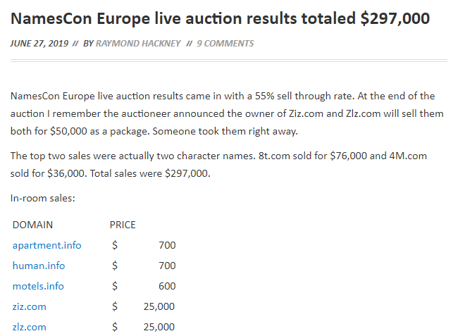3、NamesCon欧洲现场拍卖多个域名