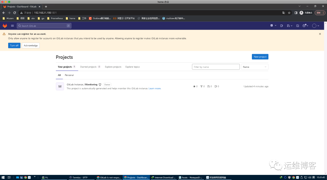 默认情况下,安装好系统后,gitlab还支持用户注册