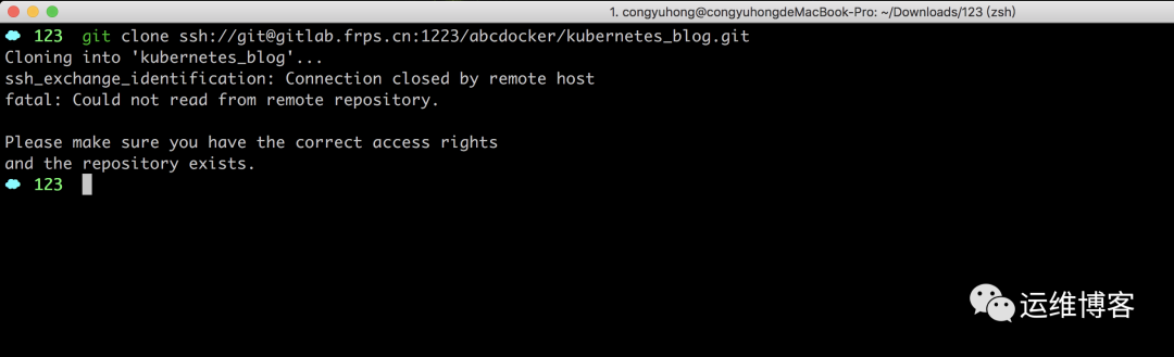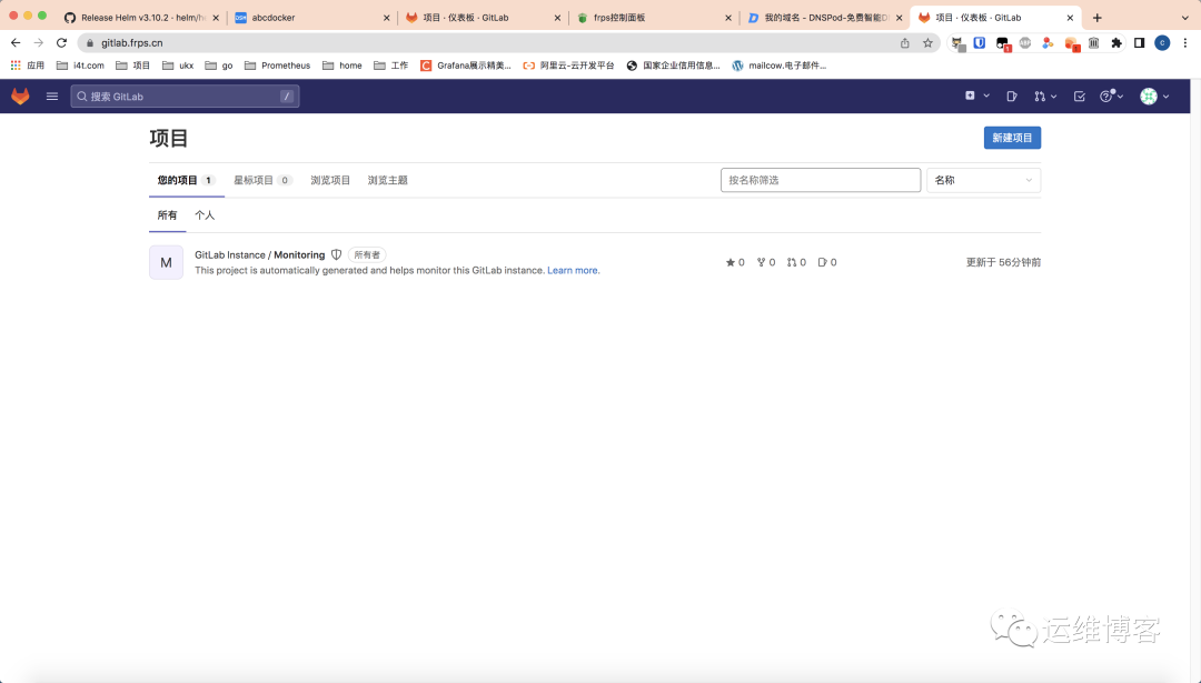 [gitlab-ssh]type= tcplocal_ip = 192.168.31.198local_port = 1223remote_port = 1223[gitlab-80]type= tcplocal_ip = 192.168.31.198local_port = 1801remote_port = 1801配置完成后重启frpc容器,测试访问效果