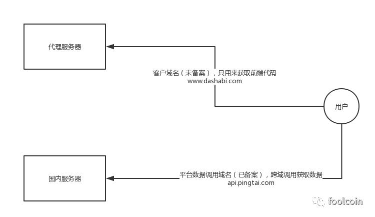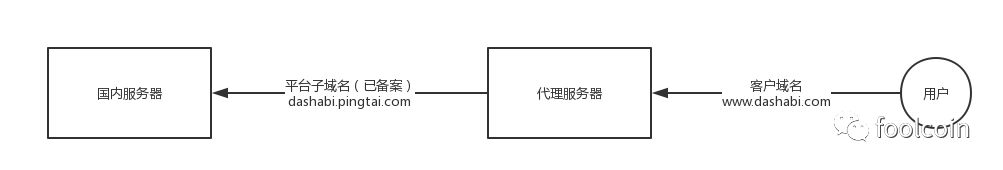 很直接能想到的当然就是把服务器放到国外喽。但是考虑到原来有备案的用户、国内访问速度等问题,直接把数据放国外是不行的,所以最简单的方法就是建立一个国外代理。我的做法是,用户提交他购买的域名,然后我会给他一个cname地址,实际指向为一台国外服务器。而国外服务器上的代理(实际为Nginx)针对每一个域名,都转发到对应的平台子域名。这样的好处是,我们的代码几乎不用改。